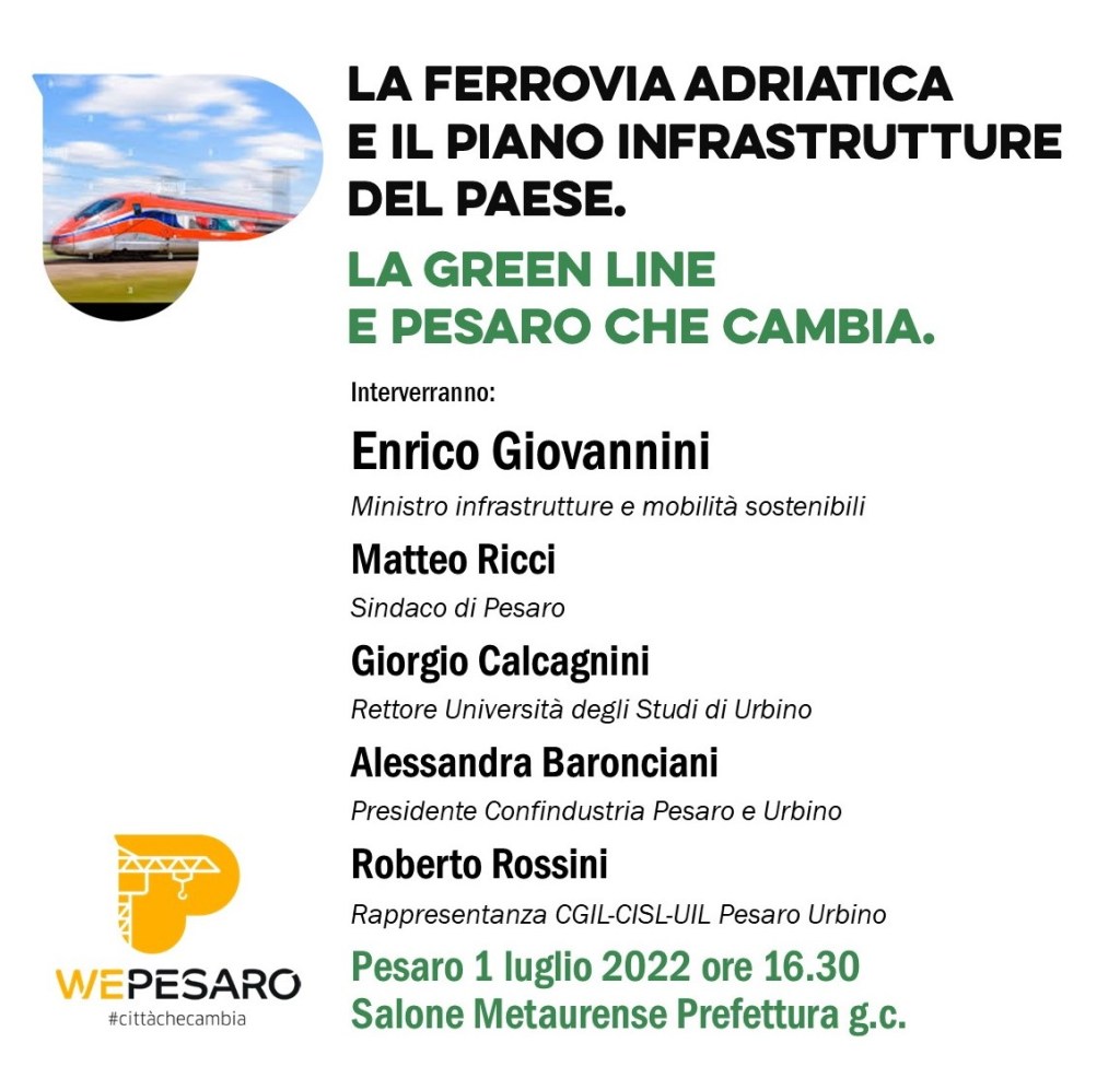 Con il Ministro alle Infrastrutture e Mobilità Sostenibili Enrico Giovannini e il sindaco di Pesaro Matteo Ricci,interverranno il Rettore dell’Università di Urbino Giorgio Calcagnini, la presidente di Confindustria Pesaro e Urbino Alessandra Baronciani, in rappresentanza di CGIL-CISL-UIL Roberto Rossini.