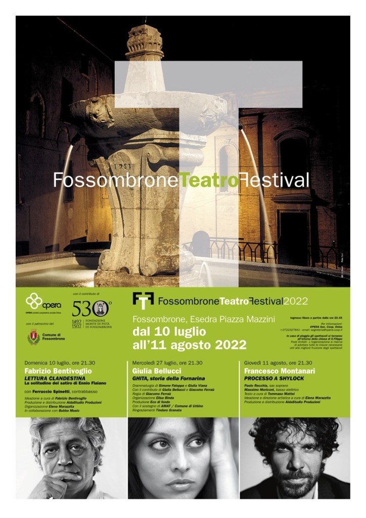 Sappiamo quanto i forsempronesi e il territorio tuto tengano allaoramai tradizione estva del Fossombrone Teatro Festval, interrota bruscamente negli ultmi due annidalla pandemia. Non abbiamo dubbi quindi sulla risposta del pubblico alle proposte artstche di questa edizione, scelte come sempre e affidate alla qualità”. Si partedomenica 10 luglio con Fabrizio Bentvoglio in “Lettura Clandestna. La solitudine del satiro” di Ennio Flaiano. Oltre all’attore, che ha ideato e curato lo spetacolo, sarà presente sul palco Ferruccio Spinet al contrabbasso. Il recital restituisce alcuni tra gli innumerevoli artcoli che Flaiano scrisse per giornali e riviste, selezionati e letti dall’autore milanese con il contrappunto musicale di Ferruccio Spinet per raccontarne e tramandare ai posteri la fgura di un uomo che, come pochi altri, ha saputo raccontare l’Italia per ciò che, incredibilmente, ancora oggi è. Il secondo appuntamento è per mercoledì 27 luglio con lo spetacolo-concerto“GHITA, storia della fornarina”, con Giulia Bellucci per la regia di Giacomo Ferraù. Prodoto da Eco di Fondo, con il sostegno di Amat e del comune di Urbino, vedrà il ritorno nelle sue terre d’origine dell’atrice forsempronese. La notte tra il 6 ed il 7 aprile di 500 anni fa, il mondo perdeva il divino pittore Rafaello. Accanto a lui, però, non vi è traccia di quella che, nella sua biografa o forse nella realtà, è stato il più grande amore: Margherita Lut, nota al grande pubblico come la Fornarina. Sarà proprio lei, la sua storia, a regalarci uno sguardo più umano del divino pittore. A chiudere l’edizione 2022 sarà Francesco Montanari, giovedì 11 agosto, con il recital “Processo a Shylock”, ideato e diretto da Elena Marazzita. L’artsta romano sarà accompagnato da Paolo Recchia al saxsoprano e da Massimo Moriconi al basso eletrico. “Tre autentci talenti del teatro italiano, per un cartellone che rappresenta un eccellente punto di equilibrio tra classico e moderno – ha sottolineato Fiorelli – e che ci consente di tenere vivo il nostro desiderio: confermare il Fossombrone Teatro Festival come un evento vivace e interessante nel quale ritrovarsi, uno spazio condiviso dove interpreti, registi, autori e pubblico si possano sentre a loro agio in una splendida cornice”.“La cooperatva Opera riprende la produzione del FTF con grande entusiasmo dopo la pausa dovuta alla pandemia – ha dichiarato Mario Rosati, vicepresidente di Opera, responsabile area cultura e turismo -.Siamo felici di proporre una programmazione di grande valore, capace di comprendere spetacoli diversi ma all’insegna della qualità più alta e della capacità di creare stimoli e interesse. Il nostro impegno, come al solito, è stato volto ad esaltare lo sforzo della Fondazione, come soggetto promotore e sostenitore della manifestazione, e a offrire serate dalla grande valenza culturale ai cittadini, adempiendo così alla nostra missione e al nostro attaccamento al territorio. Ringraziamo pertanto la Fondazione in primis e tutti i soggetti che hanno permesso e facilitato l’organizzazione, come l’Amministrazione comunale, con l’augurio che questa straordinaria tradizione possa ora continuare e regalare ancora bellissimi momenti e incontri artistici d’eccezione”. “Mi preme sotolineare infne – ha concluso Fiorelli – che la manifestazione di quest’anno si colloca nell’ambito delle celebrazioni del 530^ dell’isttuzione a Fossombrone dell’antico Monte di Pietà, poi divenuto Monte di Credito su Pegno, avvenuta nel 1492, di cui la Fondazione Monte di Pietà di Fossombrone è la naturale contnuazione. A questo proposito abbiamo realizzato anche un logo celebratvo del 530° anniversario, che riprende il nostro logo già rivisitato in precedenza, fissando così le due date storiche, ovvero il 1492, anno di Fondazione, e 1507, quello del primo “statuto” redatto e approvato da parte del Duca di Urbino Guidobaldo I”. Com’è tradizione, si svolgeranno nella suggestva cornice dell’Esedra di Piazza Mazzini, “un piccolo gioiello all’interno del centro storico di Fossombrone”, con inizio alle 21.30 e con ingresso gratuito.