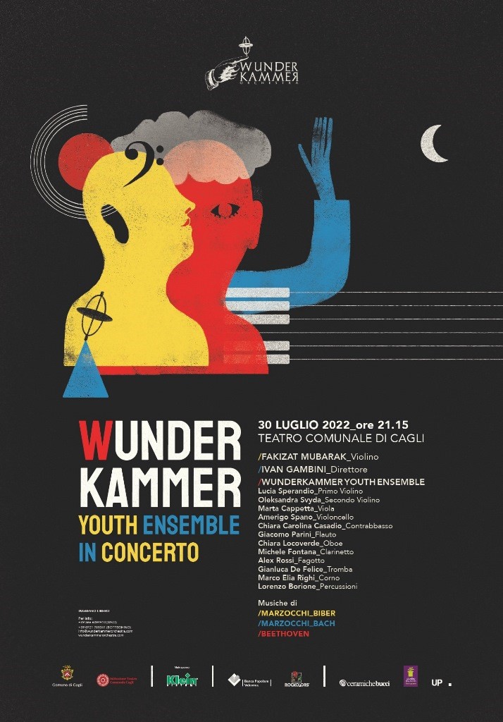 Wunderkammer Youth Ensemble (WKYE) in concerto. Il gruppo di musicisti componenti la formazione giovanile della WunderKammer Orchestra (WKO) di Pesaro, alla fine della residenza studio in corso al Teatro Comunale di Cagli dal 27 al 31 luglio per il laboratorio di musica da camera per ensemble organizzato da WKO, si esibiranno in un’anteprima aperta al pubblico sabato 30 luglio alle 21.15 al Teatro Comunale di Cagli alle 21.15 e il giorno dopo, domenica 31 (stessa ora), in un concerto nella corte seicentesca di Villa Caprile a Pesaro.