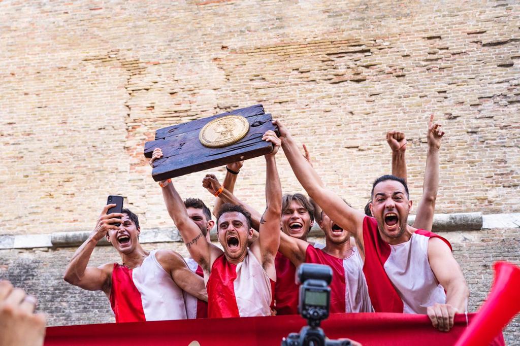 Villa Fastiggi vince la decima edizione del Palio dei Bracieri. La contrada sanpietrana ha battuto in finale Pantano, Santa Maria Dell’Arzilla e Santa Veneranda al termine della staffetta 4×1200, alzando il ciocco per la prima volta nella storia della manifestazione e facendo esplodere il fossato in un tripudio biancorosso. «È stata una bellissima festa per tutta la città – ha continuato Ricci -. Una Rocca Costanza così colorata e viva non si vedeva da tempo. Bello vedere tanti giovanissimi coinvolti, questo vuol dire che il Palio ha un grande futuro davanti». Tredici, le contrade in gara quest’anno, che hanno sfidato il caldo della domenica pomeriggio per darsi battaglia a suon di bracieri: oltre alle finaliste anche Vismara, Villa Ceccolini, Villa San Martino, Case Bruciate, Muraglia, Tombaccia, Montegranaro, Centro Mare, Soria. «In tutte le edizioni i giovani sono stati il cuore pulsante di questo evento, il loro sano entusiasmo e la loro voglia di sentirsi protagonisti della città continua ad essere il volano che ha portato al coinvolgimento di tutti i quartieri e di tutta la comunità pesarese di qualsiasi età. Ringraziamo chi sostiene il Palio dei Bracieri, importanti realtà come Riviera Banca, Coop, Prochima e grazie anche alla solida e storica collaborazione con Avis Comunale Pesaro», ha commentato l’organizzatore Massimiliano Santini.