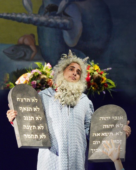 Fin dalle prove la messa in scena si è preannunciata divertente e colorata, un gioco degli equivoci e di travestimenti tra sacro e profano, grazie anche al gioco di luci di Valerio Alfieri.