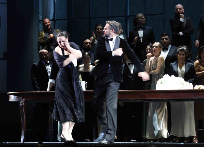 Il cast è all’altezza della situazione: Eleonora Buratto (che si contraddistingue per una vocalità densa e morbidissima) impersona Desdemona, la vera protagonista dell’opera. E’ quasi schiacciata in scena da tre tenori oltremodo grintosi: Dmitry Korchak nelle vesti di Rodrigo, il figlio del doge; Antonio Siragusa in quelle del furioso Iago; Enea Scala, in quelle di Otello.
