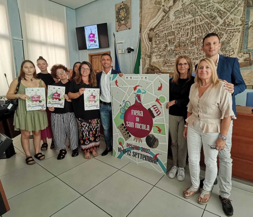 A restituire al pubblico i valori che la Fiera di San Nicola porta con sé è il liceo artistico Mengaroni che ne ha realizzato l’immagine 2022: «Siamo onorati di contribuire alle iniziative della nostra città. Come docente – spiega Isabella Galeazzi durante la presentazione a cui ha partecipato anche una delegazione di studenti e la vicepreside Maria Maddalena Pascucci – ringrazio gli organizzatori e i promotori per l’attenzione dedicata ai ragazzi nel coinvolgerli: spesso ci dimentichiamo di inserire le loro capacità creative e progettuali nel territorio».