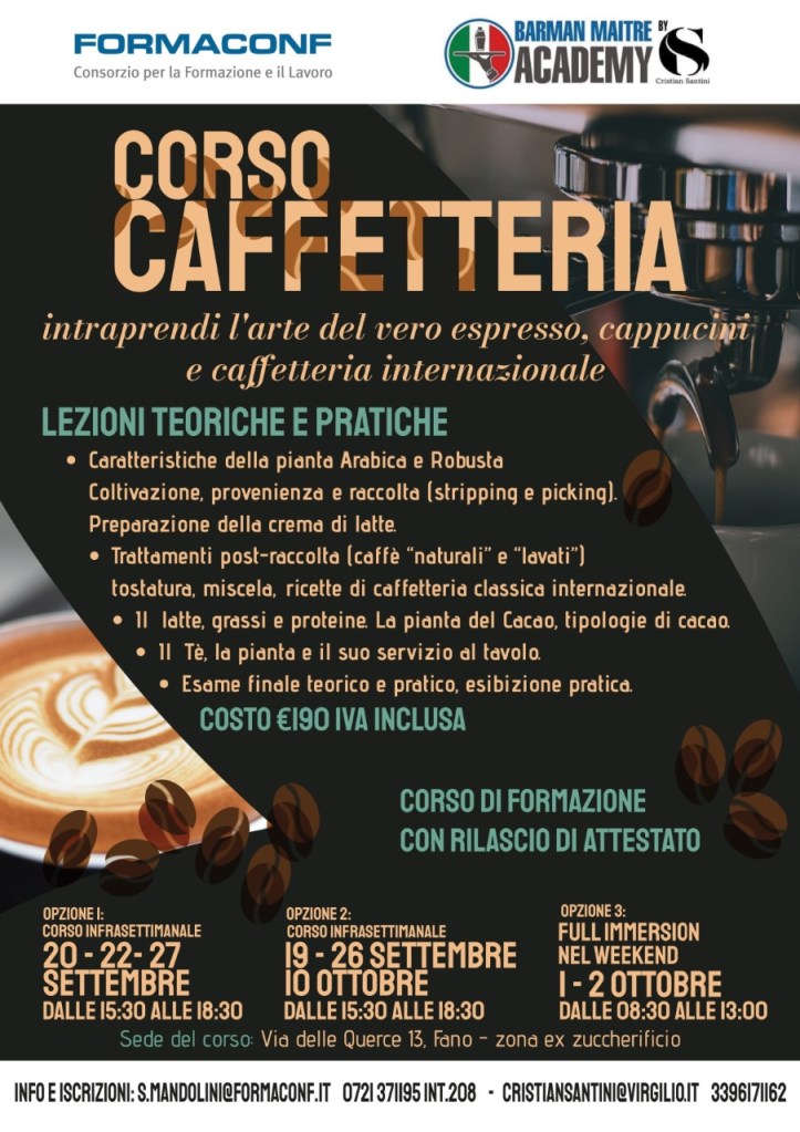 Informazioni: https://www.formaconf.it/corso/barman/ https://www.formaconf.it/corso/corso-caffetteria/