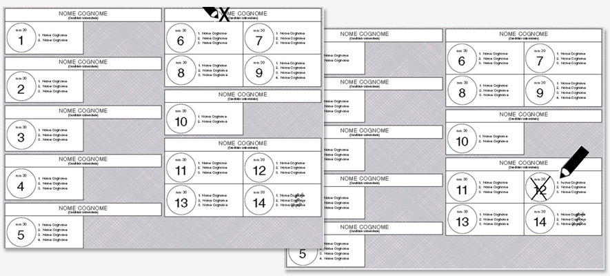 Massima attenzione a non sovrapporre le schede una sull’altra al momento dell’espressione del voto, per evitare che il segno di voto tracciato su una scheda sia visibile anche su quella sottostante.