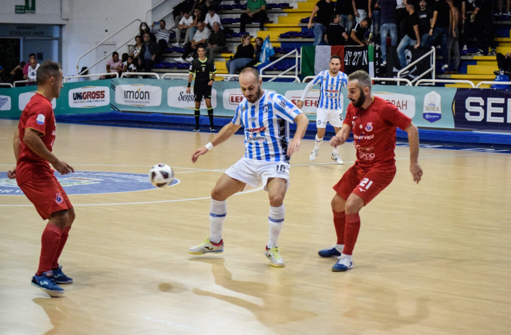 PESCARA – Era una impresa quasi impossibile considerate le assenze, ma l’Italservice Pesaro ci è andata davvero vicina. Nella prima giornata di Serie A, è mancato davvero poco affinché i biancorossi portassero via punti dal PalaRigopiano. I pesaresi si sono presentati al cospetto del Futsal Pescara in piena emergenza perché con le forze davvero ridotte: privi di Dalcin, Kytola e Alflen, c’erano solamente i 3 portieri e 6 calciatori di movimento concretamente utilizzabili. Eppure, grazie ad una prova di grandissimo cuore, capitan Tonidandel e compagni sono stati battuti di misura. E certamente, soprattutto per il gran secondo tempo disputato, avrebbero meritato il pari.
