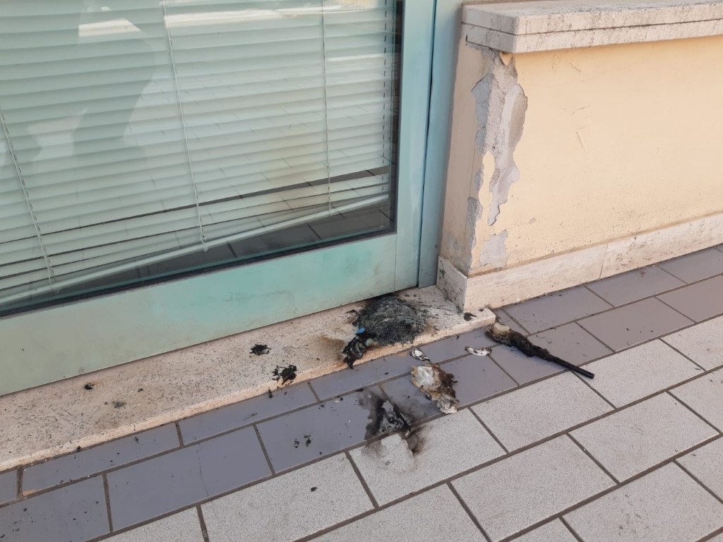 Nel pomeriggio la ritorsione e l’incendio. All’odore di bruciato e al fumo che lentamente si è insinuato negli uffici, il pronto intervento del Comandante che in quel momento lavorava internamente alla sede.