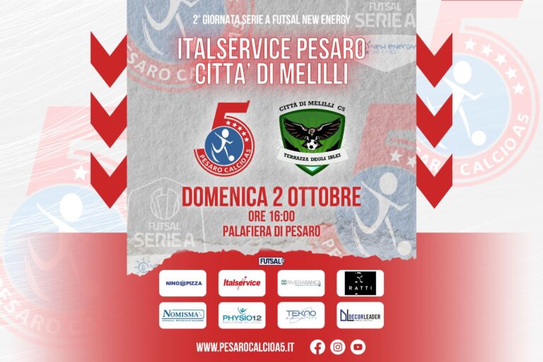 PESARO – Riscattiamoci, tutti insieme. A casa nostra, al PalaFiera. L’Italservice Pesaro si prepara al debutto interno in Serie A, ospitando la matricola Città di Melilli. Si gioca domenica, alle ore 16, con diretta streaming visibile su futsaltv.it.