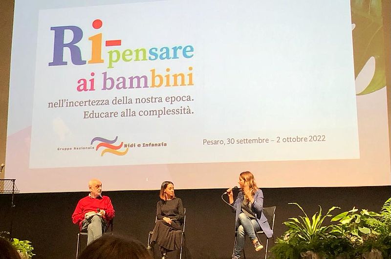 Tra i relatori,Miguel Benasayag, filosofo e psicanalista, Jan Peeters Senior, dell’Università di Ghent, Raffaele Mantegazza, professore di pedagogia interculturale, Elisa Dal Molin, di Famiglie Arcobaleno Emilia Romagna «che ha posto l’attenzione sulla necessità di sbloccare la burocrazia che ostacola l’inclusione delle famiglie arcobaleno, uno dei temi del tavolo di lavoro dedicato agli stereotipi di genere, tra i 4 che si sono svolti il sabato mattina tra la chiesa dell’Annunziata, il Salone Metaurense, palazzo Gradari e il Teatro Sperimentale». E dai quali è emersa «una grande voglia di ripartire, e di farlo dalla scuola seguendo la via tracciata dalle nuove linee di indirizzo emanate dal Governo per il mondo dei servizi educativi 0-6 anni».