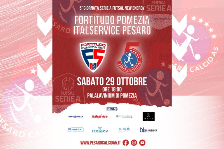 PESARO – L’Italservice Pesaro va a caccia del riscatto. I biancorossi devono lasciarsi alle spalle la sconfitta col Napoli e la recente eliminazione dalla Coppa della Divisione. C’è una nuova sfida di campionato all’orizzonte e la concentrazione deve assolutamente essere dedicata a questo incontro. Capitan De Oliveira e compagni – in attesa del recupero di Tonidandel – fanno visita alla Fortitudo Pomezia. Si gioca sabato alle ore 18, al PalaLavinium di Pomezia. La gara sarà visibile in diretta streaming su futsaltv.it.