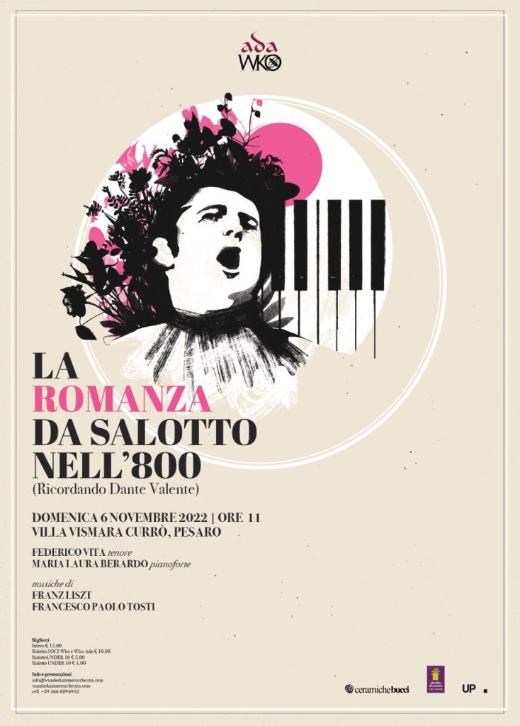 (PESARO) – La Romanza da Salotto fu in voga nell’Ottocento, in particolare quella italiana che ebbe in autori come Rossini, Bellini, Donizetti, Verdi e Tosti, la sua massima espressione, anche se altri si cimentarono con ottimi risultati. La WunderKammer Orchestra (WKO) la ripropone domenica 6 novembre alle 11.00 a Villa Vismara Currò con il concerto dall’inequivocabile titolo “La romanza da salotto nell’Ottocento”.