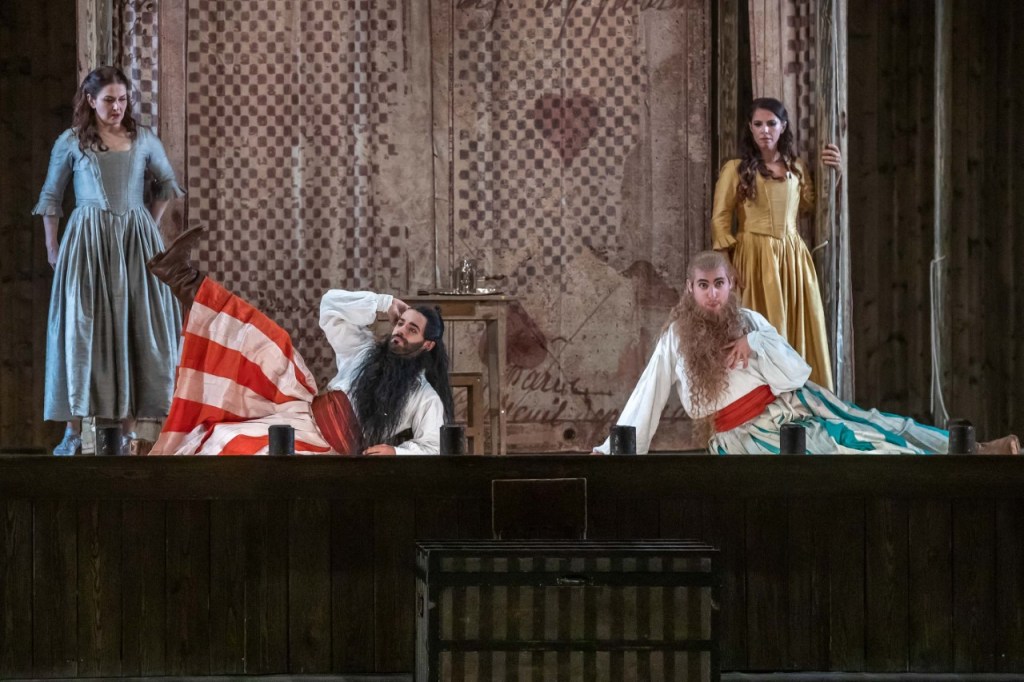 Don Giovanni cerca di sedurre le sue prede in ogni modo, manipolandole ed ingannandole, ‘agitando come un terremoto la più complessa delle opere della trilogia’, scrive Leonetta Bentivoglio nel bel saggio sulla trilogia in seno a ‘Mozart, Mozart, Mozart’, il libro editato da Ravenna Festival che accompagna le tre opere rappresentate.