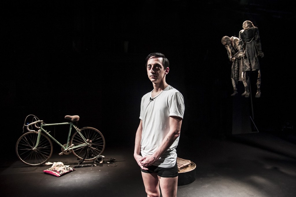 “Immaginiamo Fausto Coppi, negli ultimi giorni, quelli in preda alla febbre data dalla malaria, nel coma, dove il tempo è sospeso e parallelo. In quel limbo – scrive Cesare Inzerillo nelle note allo spettacolo -, Coppi ripercorre le tappe della sua vita. Della sua corsa. Fausto, in sella alla bicicletta sin da bambino, quando da garzone faceva commissioni per una salumeria di Novi Ligure, vuol fermare il tempo. Lo vuol fare perché si rende conto presto che mentre il tempo passa le persone muoiono, più lui cresce e più velocemente i suoi cari se ne vanno. Il suo corpo, così particolare, esile, storto, non crescerà in modo naturale, perché lui rincorrerà il tempo e alla fine lo supererà, vi si porrà davanti e lo fermerà. Fausto sa bene come fare, perché ha lo strumento: la bicicletta che gli ha regalato suo zio Fausto. Il ragazzino di quindici anni, sogna, immagina, ha trovato lo scopo della sua vita: correre, correre tanto forte fino a imparare a volare. Il ragazzino di 15 anni vola con la fantasia, come è naturale che sia a quell’età, soprattutto se hai un talento naturale che spinge nel tuo corpo e nella tua anima. Ogni record battuto è un cronometro fermato, è un tempo che viene scritto. E Fausto stabilirà una lista infiniti di record, entrando nella storia, scrivendo la storia dello sport, fermando a quegli anni la storia del ciclismo e fotografando quel tempo. Il suo tempo. Il nostro tempo. Tempo inFausto”.