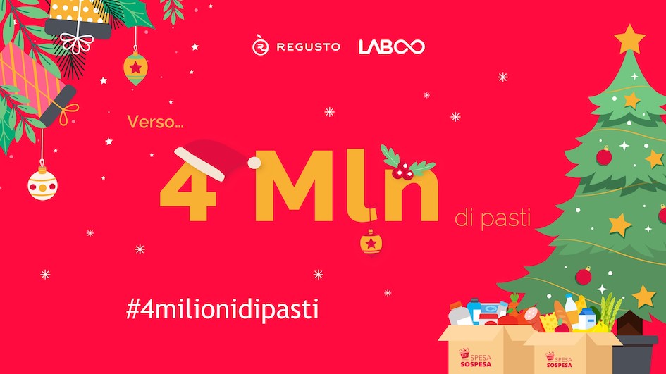 Parte oggi e sarà attiva per tutto il mese di dicembre la campagna natalizia di SpesaSospesa.org in collaborazione con Regusto, partner strategico e cuore tecnologico che certifica i benefici sociali e ambientali del progetto. La campagna si rivolge a imprese e cittadini e lo scorso anno aveva superato la quota di un milione di pasti distribuiti. Quest’anno l’obiettivo quadruplica. Per Natale 2022 il traguardo da superare è fissato a 4 milioni di pasti, con l’obiettivo di sensibilizzare sempre di più cittadini e imprese sull’importanza della lotta allo spreco. Tutte le informazioni per contribuire alla campagna sul sito: https://4milionidipasti.lab00.org