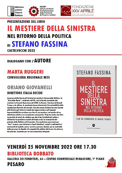 Venerdì 25 novembre 2022 ore 17.30 presso la Biblioteca Bobbato (Galleria dei Fonditori, 64 – Centro Commerciale Miralfiore – 1° piano) la Biblioteca Bobbato, Iscop, Fondazione XXV Aprile invitano alla presentazione del libro di Stefano Fassina, edito da Castelvecchi.