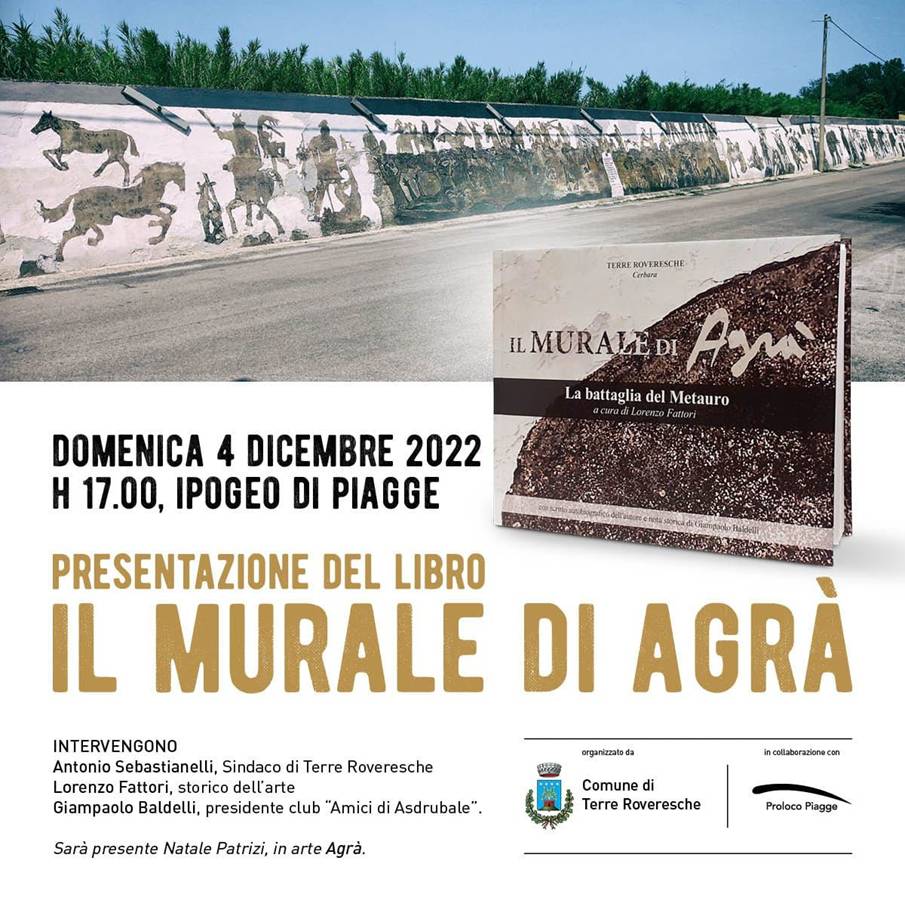 Il 4 dicembre alle ore 17.00 presso lo spazio espositivo dell’Ipogeo di Piagge, verrà presentato il libro “Il murale di Agrà”, alla presenza dell’artista, Natale Patrizi, del curatore Lorenzo Fattori e di Giampaolo Baldelli, presidente del club “Gli amici di Asdrubale”.
