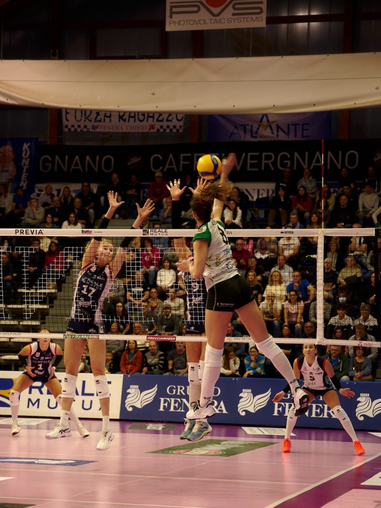 Vallefoglia non riesce ad arginare l’esplosività delle piemontesi che impongono sempre il proprio gioco. Il muro piemontese si dimostra una delle armi vincenti delle padrone di casa, soprattutto quando le tigri biancoverdi cercano di accorciare le distanze, grazie anche a una diversa distribuzione di gioco da parte di ‘Ace Machine’ Hancock. Villani e Weitzel sono determinanti, salgono in cattedra, abbattendo il punteggio e il morale delle biancoverdi.