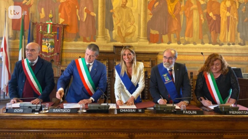 PESARO – Accordo interprovinciale su risorse, cantieri e manutenzione da destinare alla ‘Strada della Luna’. Il presidente Giuseppe Paolini ha siglato il protocollo d’Intesa insieme alla presidente della Provincia di Arezzo Silvia Chiassai Martini e ai sindaci di Borgo Pace (Romina Pierantoni), Badia Tedalda (Alberto Santucci) e Sestino (Franco Dori). L’arteria collega le due Province e i tre Comuni lungo le attuali strade comunali “del Molinello” (Sestino); “di Molino di Mezzo”, “di Stiavola” e “di Montelabreve” (Badia Tedalda) e “di Parchiule” (Borgo Pace). Si tratta di un atto di svolta per un impegno crono-programmatico relativo alla gestione e alla presa in carico delle strade comunali da parte della Provincia di Arezzo e della Provincia di Pesaro e Urbino. «Con la firma del protocollo – ha evidenziato Paolini, che ha siglato l’accordo ad Arezzo, nella sala dei Grandi – si compie un passo decisivo all’interno del percorso finalizzato ad assicurare la sistemazione e il miglioramento di un collegamento a forte vocazione turistica, che unisce Province e Regioni differenti. Un buon esempio di sinergia e pianificazione tra enti locali, con benefici e ricadute positive per i nostri territori. Ringraziamo la Provincia di Arezzo e tutti i Comuni coinvolti per la grande collaborazione nella condivisione del documento». Per la Provincia di Pesaro e Urbino presente anche il direttore generale Marco Domenicucci. «Un accordo atteso da decenni dai comuni interessati – ha spiegato Chiassai Martini – che permetterà finalmente la realizzazione di opere finalizzate alla sistemazione della “Strada della Luna”, che diventerà rete viaria sicura di collegamento per il centro Italia tra Toscana, Emilia Romagna, Umbria e Marche». «Per la mia comunità è una giornata storica – ha aggiunto Pierantoni, sindaca di Borgo Pace -. Finalmente due Province che portano nei fatti la valorizzazione di quell’entroterra di cui troppe volte ci si dimentica- Speriamo che la Strada della Luna sia la via giusta per riportare i nostri luoghi a resistere per esistere». Soddisfazione espressa anche dai sindaci di Badia Tedalda e Sestino.