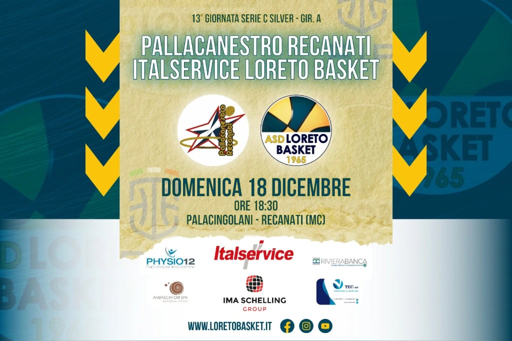 PESARO – L’Italservice Loreto si prepara all’ultima partita dell’anno, l’ultima gara prima della sosta natalizia. Il roster di coach Stefano Foglietti è impegnato in una trasferta delicata, quella sul difficile parquet del Recanati. La palla a due della tredicesima giornata è prevista alle ore 18,30 di domenica al PalaCingolani.