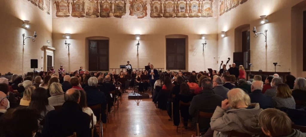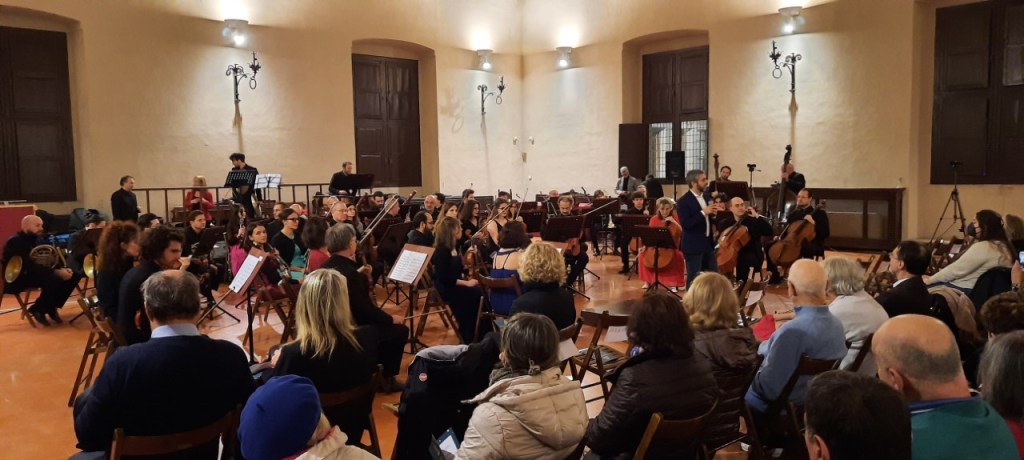 Sold out la seconda edizione del “Concerto di Natale” che si è svolto ieri nel Salone Metaurense di Palazzo Ducale. L’iniziativa gratuita, promossa dalla Presidenza del Consiglio comunale, ha visto protagoniste le musiche del compositore ceco Antonín Dvorák, interpretate dalla Filarmonica Gioachino Rossini diretta dal maestro Michele Antonelli. «È stata l’occasione per rafforzare l’armonia tra le istituzioni democratiche della città – ha sottolineato il presidente del Consiglio comunale Marco Perugini – e per continuare, insieme ai cittadini, un’altra tappa del “crescendo rossiniano” di Pesaro, Città creativa della Musica UNESCO, verso l’anno da Capitale italiana della Cultura. E per trasmettere un messaggio per un 2023 di pace, sulle note interpretate dalla Filarmonica». Sono stati 150 i pesaresi che hanno partecipato al Concerto che si è svolto «in uno dei palazzi storici più belli della città, sempre più vivo grazie alla disponibilità e alla sensibilità del Prefetto Ricciardi, che ringraziamo» ha aggiunto il presidente.