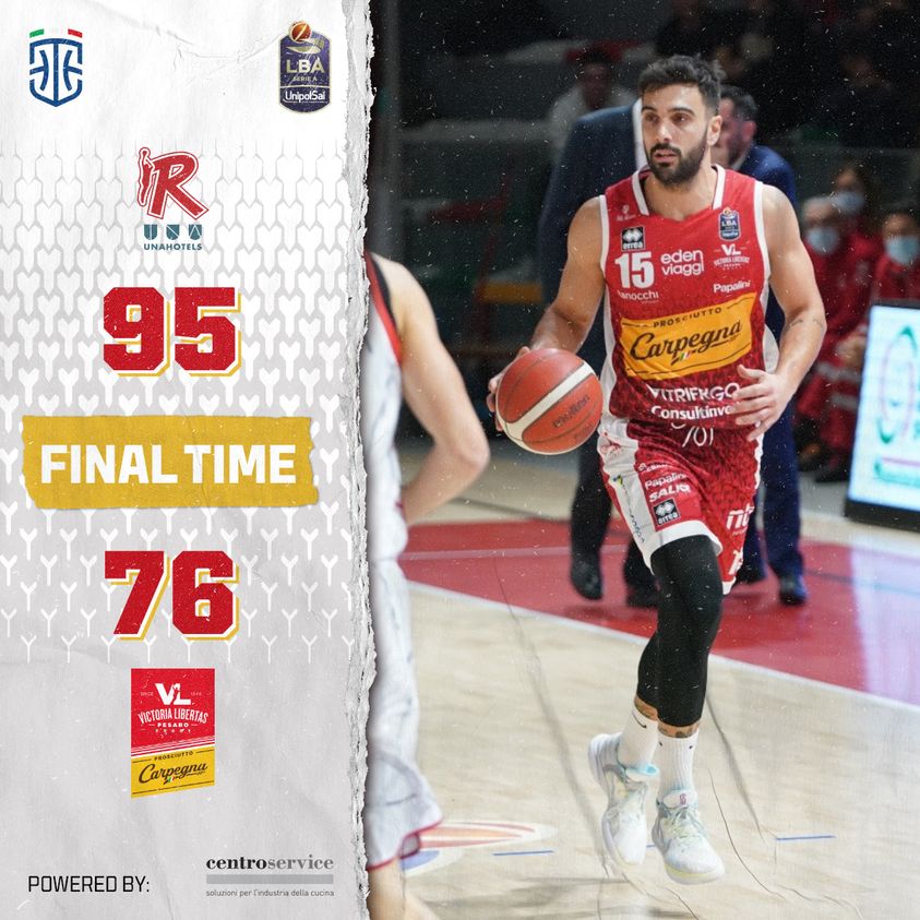 UNAHOTELS REGGIO EMILIA – CARPEGNA PROSCIUTTO BASKET PESARO 95-76 (16-18; 42-39; 67-62)
