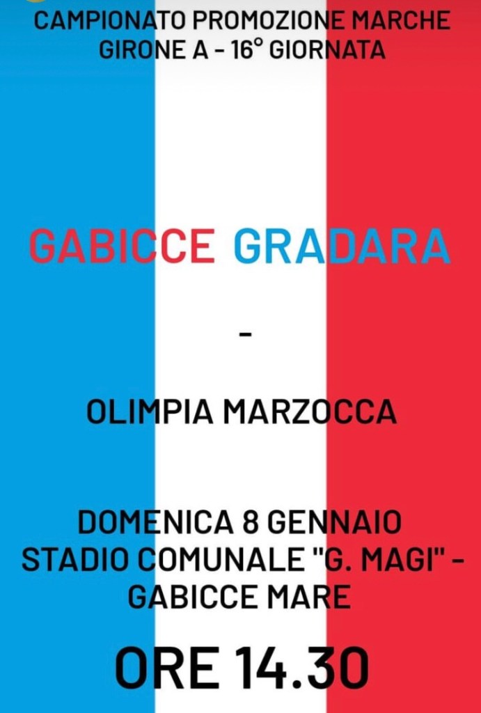 Domenica riprende il campionato dopo la sosta e il Gabicce Gradara è chiamato tra le mura amiche dello stadio Magi contro l’Olimpia Marzocca, penultimo con 13 punti alla pari della Cagliese. La squadra di Vergoni arriva all’appuntamento con una bella classifica: quarto posto a -6 dalla capolista Montecchio e terzo attacco del girone.
