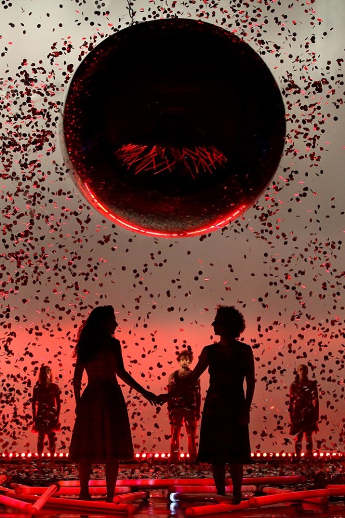 Ispirata all’omonimo romanzo di Daniele Finzi Pasca, Nuda, la nuova creazione della Compagnia è uno spettacolo denso di mistero e stupore, dove profondità e abissi sono in continuo dialogo con un mondo leggero e luminoso, fatto di piani che si sovrappongono e giocano tra loro. Cinque straordinari artisti interpretano uno spettacolo in cui la potenza teatrale si sposa con una narrazione poetica dal sapore onirico, in assoluta armonia con il teatro fisico e la danza aerea. Due gemelle, cresciute insieme in una famiglia “eccentrica”, eppure così simile a quella di tutti, si toccano, si sfiorano, a volte si calpestano, per poi riscoprirsi in un abbraccio pieno di gioia e libertà ritrovate. Un gioco acrobatico e teatrale reso possibile da un sistema di volo innovativo, insieme a un’installazione di luci interattiva intrecciati alla narrazione e un potente universo sonoro, compongono insieme questo spettacolo magico e surreale.