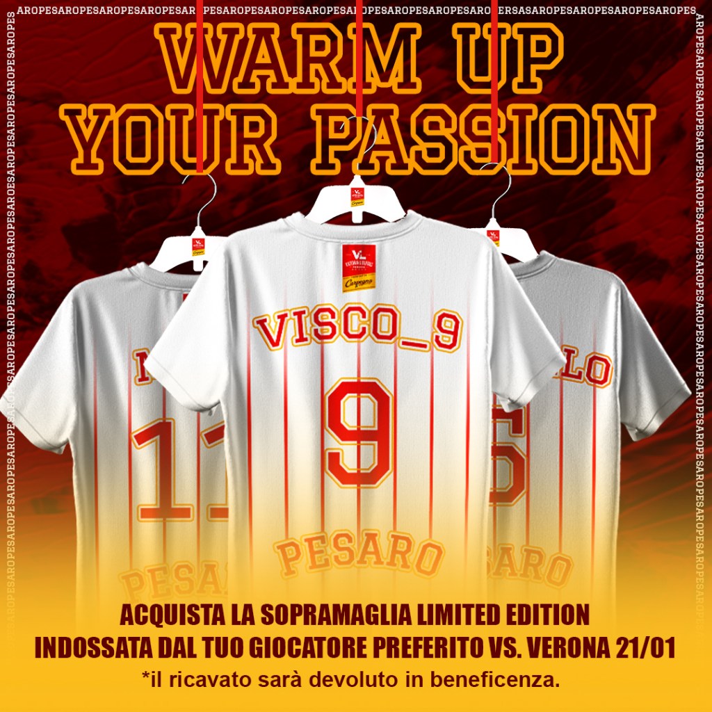 ‘Warm Up Your Passion’ è il titolo dell’iniziativa benefica promossa dal Title Sponsor Prosciutto di Carpegna e dalla famiglia Beretta che ne è proprietaria, poi sviluppata dalla VL e trasferita a Caritas Pesaro.
