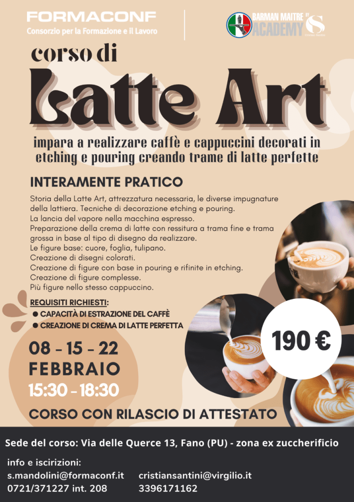 - LATTE ART: corso di 9 ore programmazione per FEBBRAIO 2023