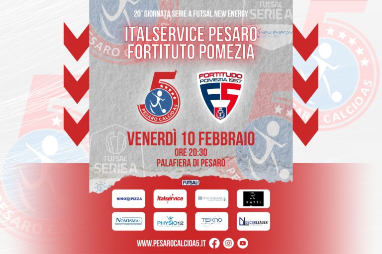 PESARO – L’Italservice Pesaro si è leccata le ferite, è tornata da Napoli con zero punti ma con (nuove) grandi convinzioni. Può giocarsela con tutti, a prescindere da ciò che dice la classifica ad oggi. La rabbia sportiva maturata in Campania, dobbiamo adesso tramutarla in voglia di riscatto nell’appuntamento di domani. C’è la visita del Pomezia, alle ore 20,30. Lo scontro salvezza, e prezioso anche in chiave rimonta-playoff, si gioca al PalaFiera e vi aspettiamo numerosi.