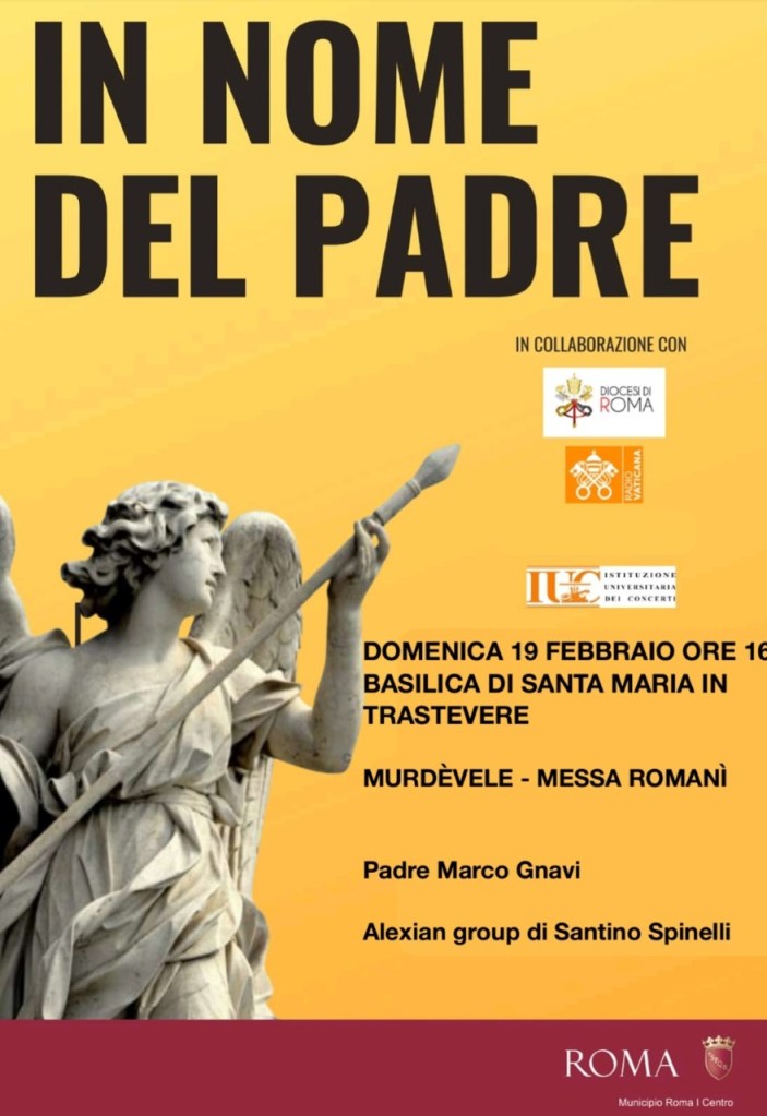 E’ quest’ultimo ad esibirsi nel prossimo appuntamento (domenica 19 febbraio, alle ore 17.00) presso la Basilica di Santa Maria in Trastevere che ospiterà la Messa in Romanì “Murdèvele”, officiata da Padre Marco Gnavi, parroco della Basilica (che ospita la Comunità di Sant’Egidio) e responsabile dell’Ufficio Diocesano Ecumenismo, da sempre impegnato a favorire il dialogo e l’unità tra i cristiani.