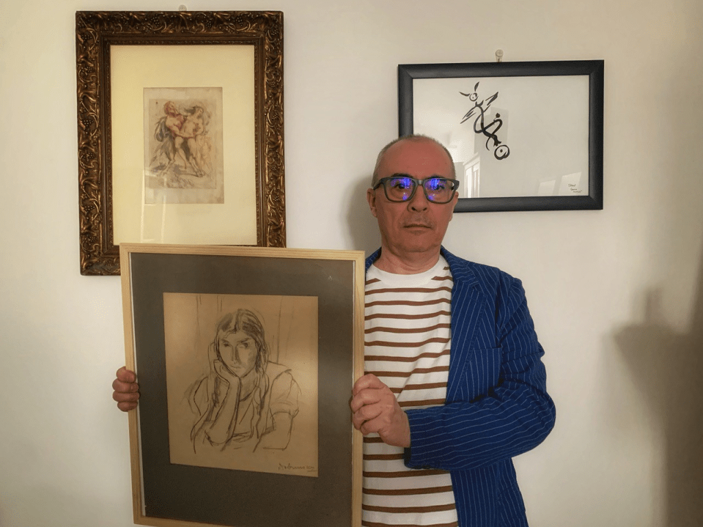 Nella foto, Roberto Malini con il Ritratto di donna di Isaac Dobrin