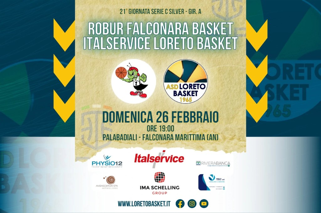 PESARO – La corsa verso la vittoria del campionato prosegue e non c’è tempo per rallentare. L’Italservice Loreto deve saperlo, deve continuare a giocare in questo modo. I gialloblu si stano preparando a una nuova sfida, un’altra trasferta e soprattutto un altro derby. Il roster di coach Stefano Foglietti fa visita alla Robur Falconara, domenica con palla a due fissata alle ore 19. Si gioca al PalaBadiali di Falconara Marittima, gara valida per la ventunesima giornata di Serie C Silver, girone Marche-Umbria.