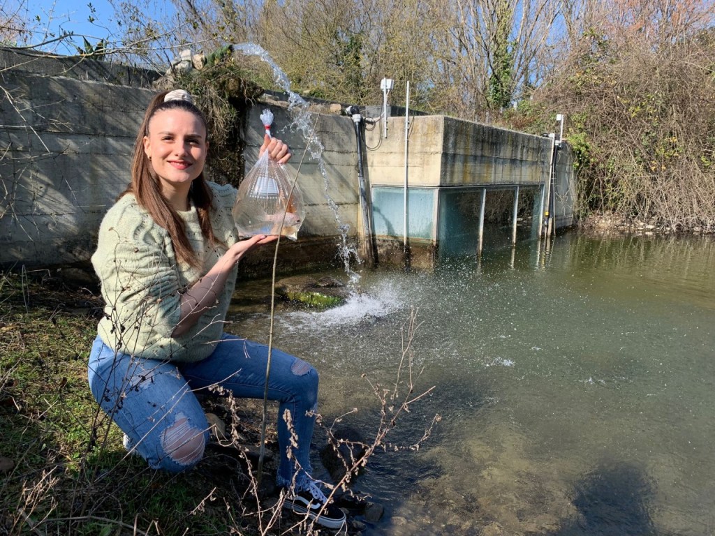 Stamattina la giovane pesarese Flavia Favulari ha liberato i suoi due pesci rossi Ulisse e Agenore in uno dei tre laghetti del parco urbano