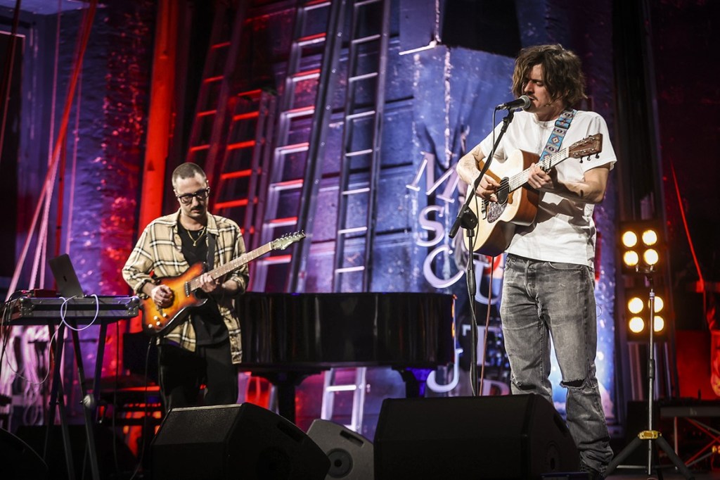 Applauditissimo dal pubblico del Lauro Rossi, il giovane cantautore bresciano Matteo Faustini, accompagnato al pianoforte da Davide Di Gregorio e dalla chitarra di Simone Oliva, ha proposto i brani “Il girasole innamorato della Luna” e “Laura” una canzone dedicata alla sorella.