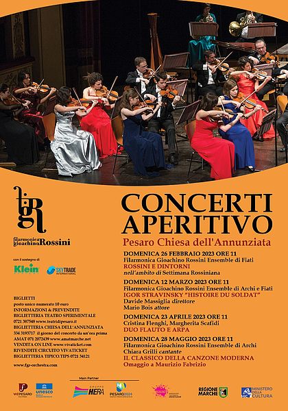 Domenica 12 marzo alla Chiesa dell’Annunziata di Pesaro secondo appuntamento dei Concerti Aperitivo promossi dal Comune di Pesaro con la Filarmonica Gioachino Rossini e l’AMAT, con il contributo della Regione Marche con il sostegno di Sistemi Klein e di SkyTrade International.