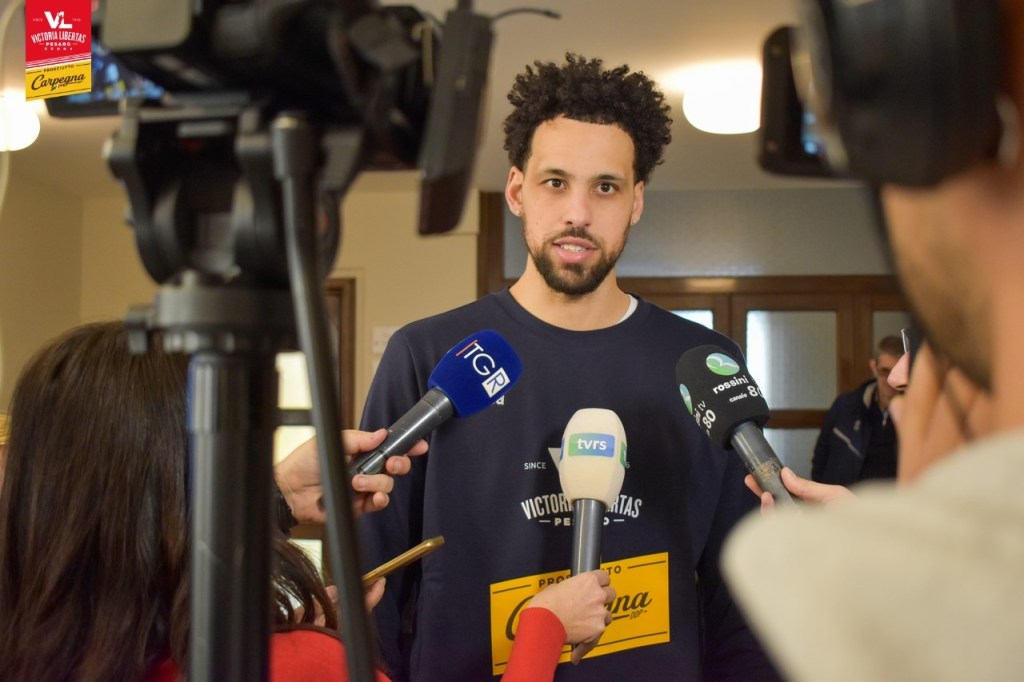 Emozioni, entusiasmo e grande determinazione: queste le sensazioni di Austin Daye che è pronto a iniziare la sua seconda esperienza con la maglia della Carpegna Prosciutto Basket Pesaro. L’ala forte classe 1988 arriva dal campionato di Taiwan ed esordirà già domani sera nel match della 22^ giornata di Serie A in programma alla Vitrifrigo Arena contro la Germani Brescia. Alla conferenza stampa di presentazione che si è tenuta nella Sala Rossa del Comune di Pesaro sono intervenuti anche il Presidente Ario Costa e l’assessore allo Sport Mila Della Dora.