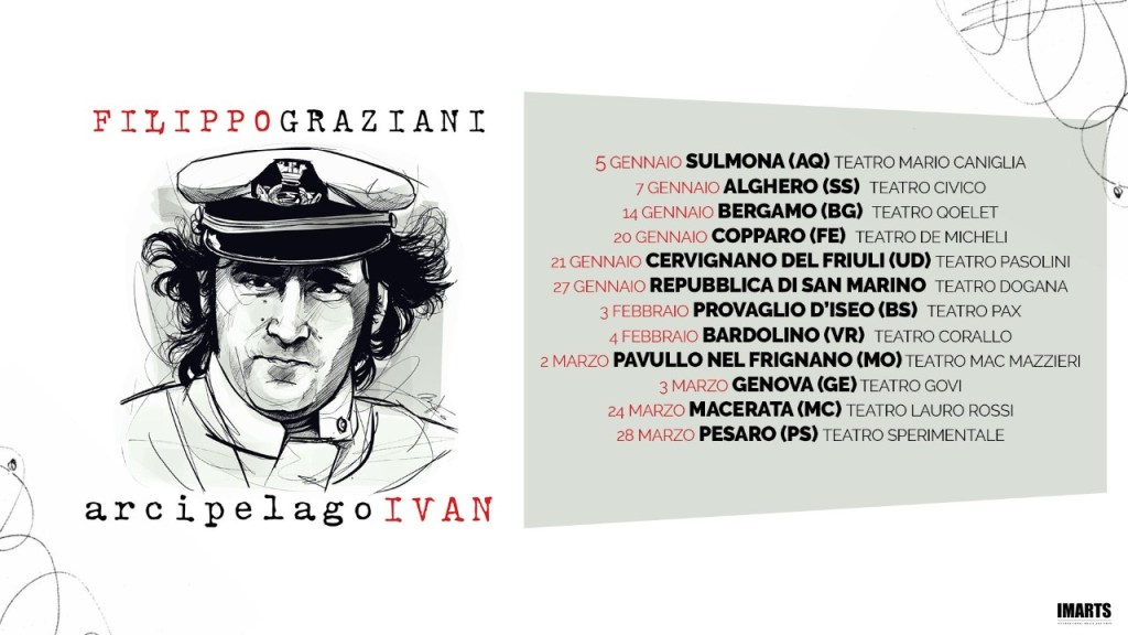 Lo spettacolo è l’omaggio di Filippo al padre che – come a bordo di una nave, traghetta gli spettatori attraverso musiche, racconti, letture e disegni (Ivan aveva frequentato la Scuola del Libro a Urbino) attraverso varie isole e porti per rivivere i grandi successi ma anche le canzoni dell’esordio e il lato B dei suoi dischi più famosi.