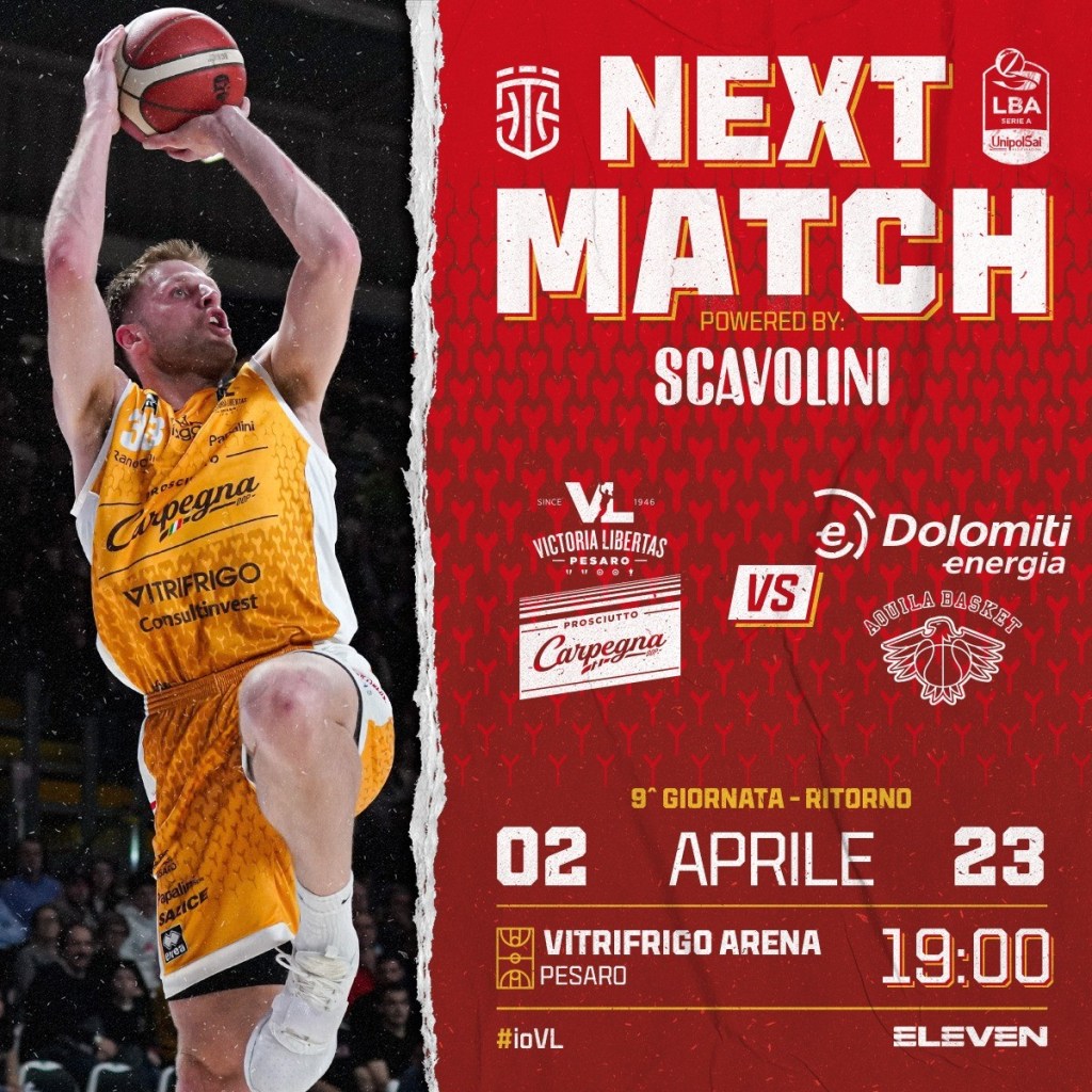 La Carpegna Prosciutto Basket Pesaro comunica che sono acquistabili i biglietti per assistere al match della 24^ giornata del campionato di Serie A tra i biancorossi e la Dolomiti Energia Trentino in programma domenica 2 aprile alle 19:00 alla Vitrifrigo Arena.
