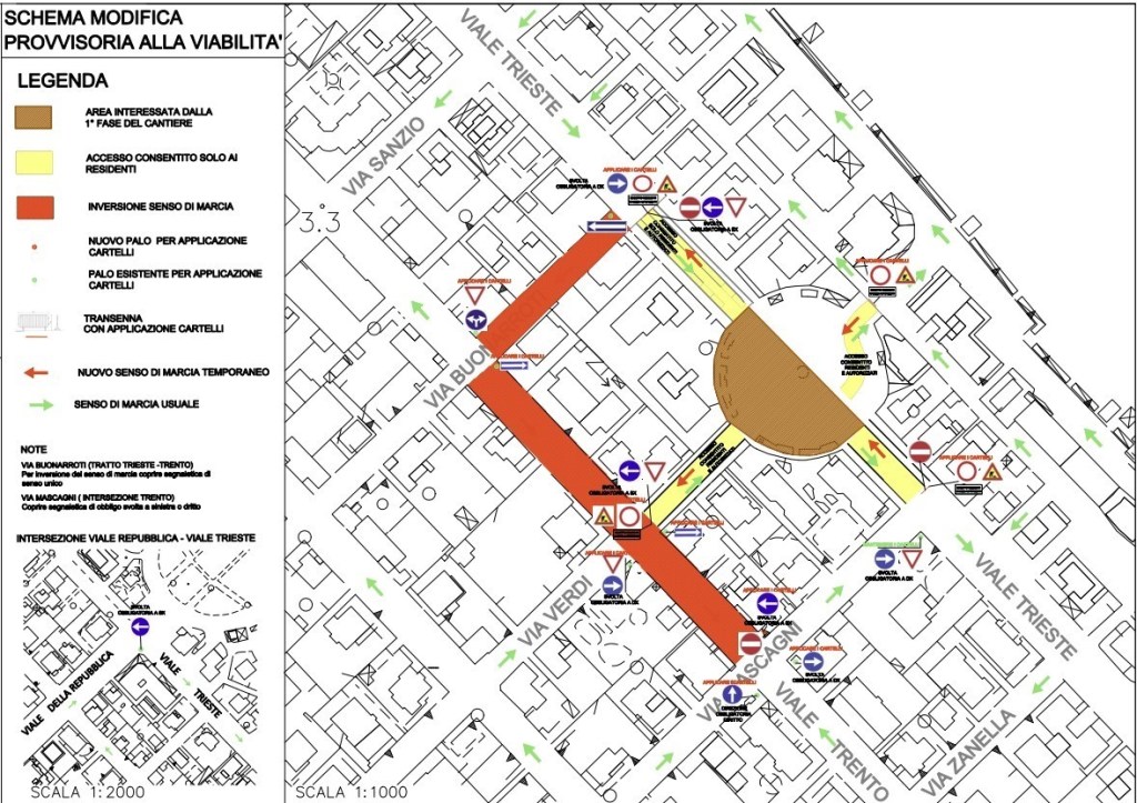 Cambiamenti che riguarderanno, in particolare, il tratto di viale Trieste interessato dall’intervento: quello compreso tra via Buonarroti e via Mascagni.
