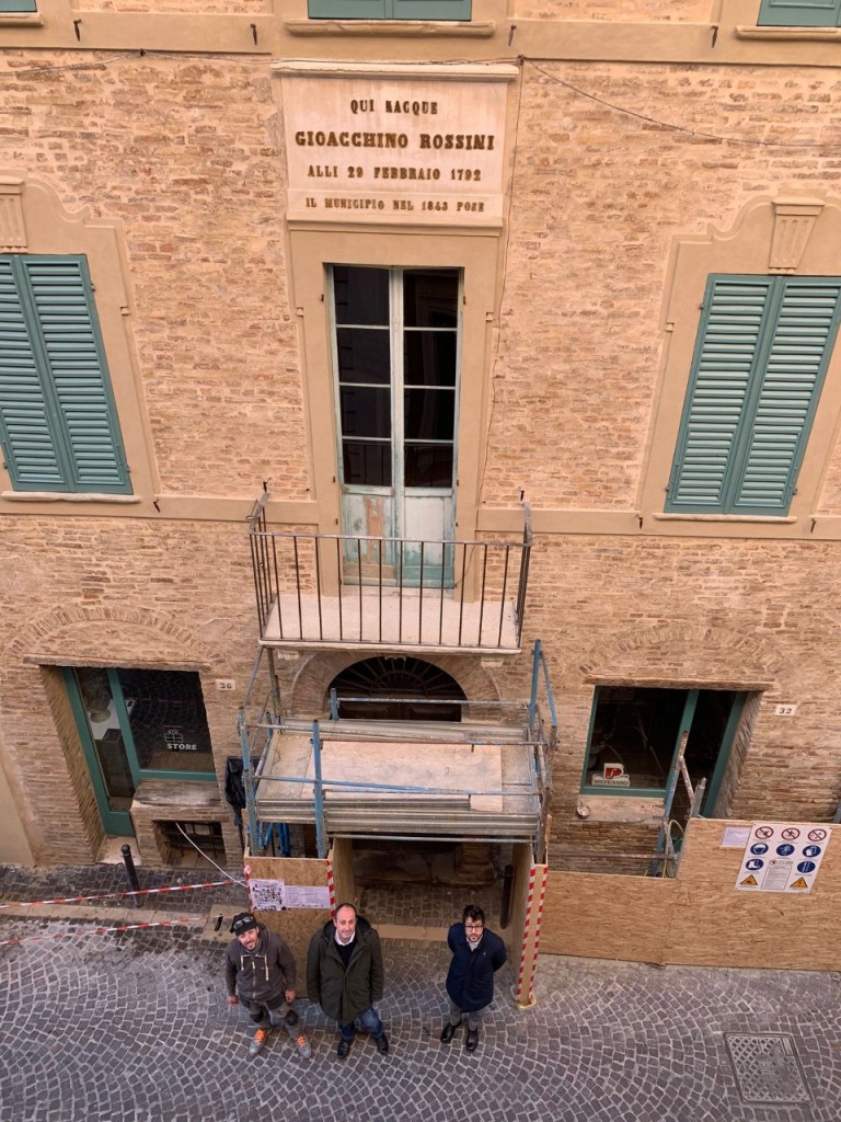 Sollevando di poco lo sguardo verso l’alto ci si accorge già dello splendore che acquisirà la facciata di Casa Rossini una volta ultimati gli interventi di restauro conservativo iniziati due mesi fa. «Da ieri sono state tolte le impalcature “liberando” i tre quarti della facciata dell’edificio che fu casa natale del Maestro e l’impatto visivo è già magnifico – dicono Daniele Vimini, vicesindaco assessore alla Bellezza e Riccardo Pozzi, assessore al Fare -. Siamo agli ultimi step dell’intervento che ci consentirà di mettere in sicurezza e rendere ancor più bello uno dei luoghi simbolo della città e punto di riferimento per Pesaro2024».