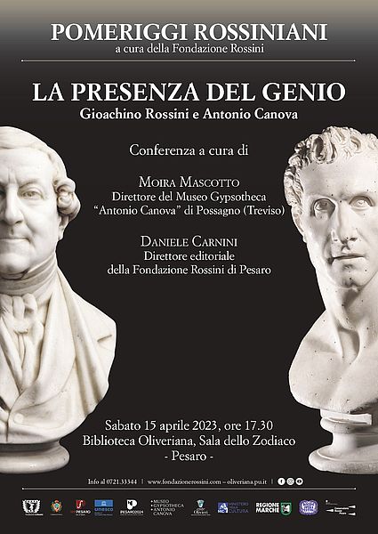 Sabato 15 aprile alle ore 17.30, nella Sala dello Zodiaco della Biblioteca Oliveriana, la Fondazione Rossini presenta la conferenza La presenza del Genio. Gioachino Rossini e Antonio Canova, nell’ambito della rassegna ‘Pomeriggi Rossiniani’.
