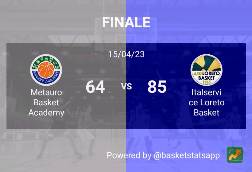 Partita differente da quella che abbiamo visto nel match di andata, le due formazioni sono scese sul parquet già certe del balzo di categoria. Bene subito Marziali, al rimbalzo e per quanto riguarda gli assist. Foglietti è puntuale sotto canestro. Si arriva all’intervallo sul 22-45, frutto di una difesa solida. Il copione si ripete fino alla sirena, l’Italservice Loreto conduce senza particolari affanni, con un Maretto in formato super.