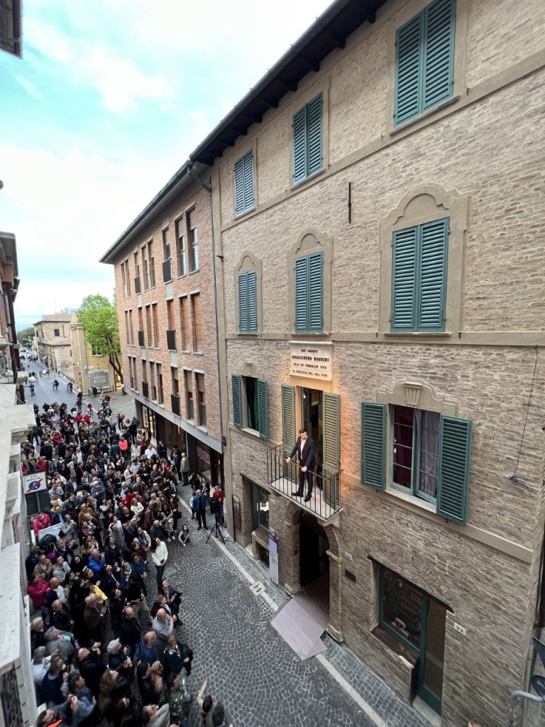 A seguire, il momento di musica rossiniana, proposto nell’amata formula del “Concerto dal balcone” in collaborazione con l’Accademia Rossiniana “Alberto Zedda” del Rossini Opera Festival, ha richiamato centinaia di pesaresi in via Rossini per ascoltare “Largo al factotum” da Il barbiere di Siviglia e “Nel teatro del gran mondo” da Il signor Bruschino interpretati dal baritono Matteo Mancini accompagnato al pianoforte da Alessandro Uva.