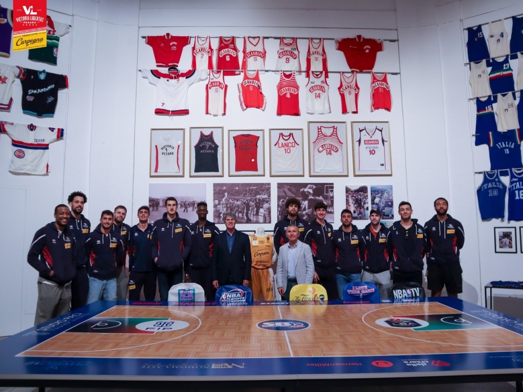 Un’occasione speciale nella quale coloro che fanno parte della famiglia del Consorzio Pesaro Basket, i giocatori che ogni domenica regalano emozioni sul parquet e lo staff tecnico biancorosso – alla presenza anche del Presidente Onorario Valter Scavolini, del Presidente Ario Costa, del Direttore Sportivo Stefano Cioppi oltre al Brand Ambassador Walter Magnifico – hanno potuto apprezzare tantissimi cimeli e reperti in ambito nazionale e internazionale che da molti anni sono catalogati e raccolti con cura e passione da Alberto Cecere, il quale ha dato vita a questa grande opportunità insieme a Giampiero Hruby, editore di SuperBasket.