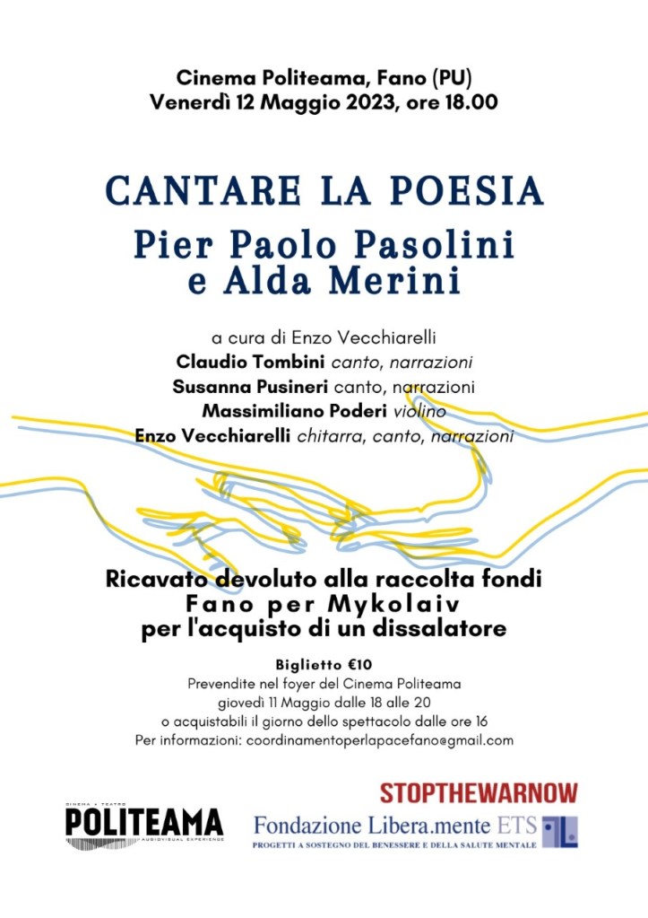 Spettacolo sulle canzoni scritte da Pier Paolo Pasolini e Alda Merini Venerdì 12 maggio alle ore 18.00 al Cinema/Teatro Politeama di Fano … vedi locandina!