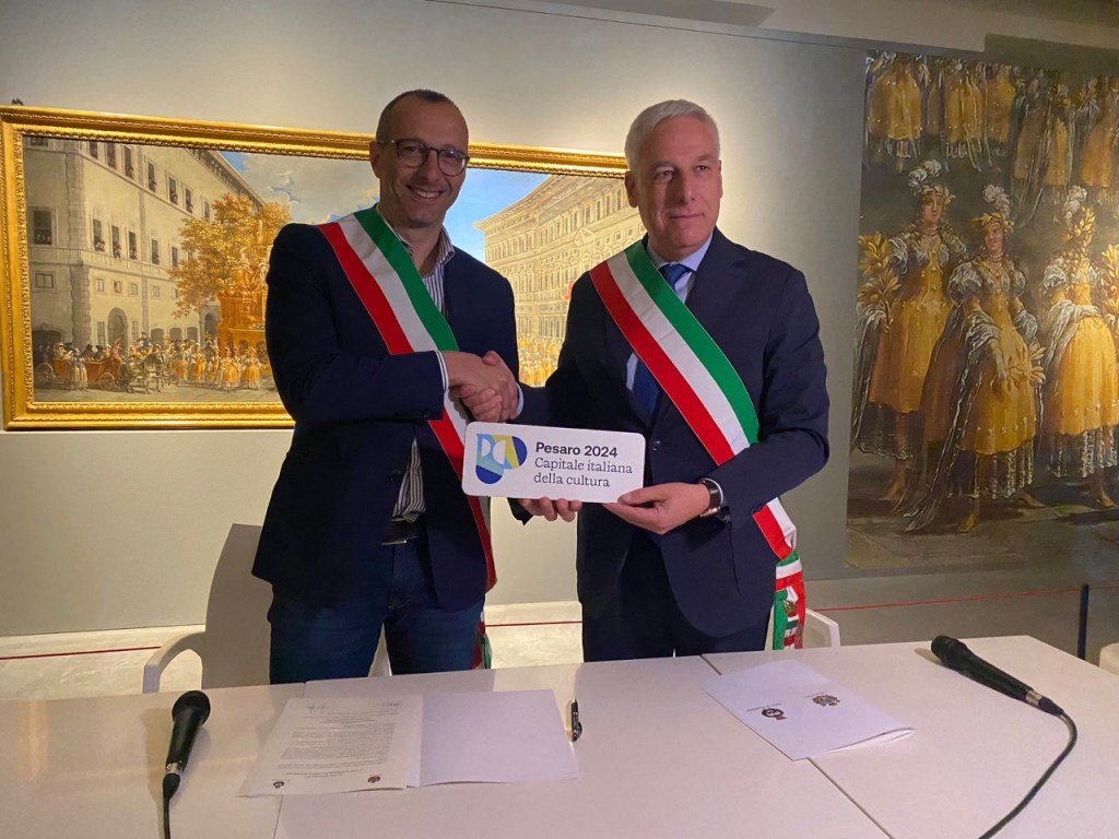 Pesaro e Viareggio unite nel segno della cultura, della musica e della tradizione. Questa mattina i sindaci Matteo Ricci e Giorgio Del Ghingaro hanno firmato una lettera d’intenti «strategica» che suggella il legame di amicizia tra le due città. «Condividiamo l’impegno nella valorizzazione del nostro patrimonio culturale e la stima reciproca tra le amministrazioni instauratasi in occasione della Capitale Italiana della Cultura 2024», hanno spiegato i sindaci delle due città finaliste.