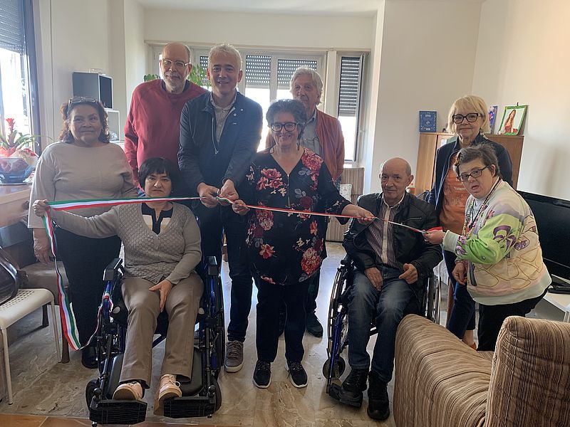 Taglio del nastro per l’appartamento donato da Aias che accoglie da oggi 3 “protagonisti di un’esperienza di autonomia” che coinvolge ATS1 e le realtà locali che lavorano per la disabilità grave riunite nella Fondazione Noi Domani