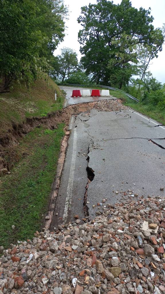 Taviglione (frana di valle dopo Gadana); Sp 37 Sassocorvaro (frana di valle in prossimità del Comune di Sassocorvaro); Sp 16 Orcianense (frana di valle nei pressi di Montemaggiore al Metauro); Sp 94 Monterolo (smottamenti di valle e di monte); Sp 43 San Gregorio (frana e smottamenti); Sp 143 Cairo (smottamenti); Sp 115 Santa Vittoria (frana di valle prima di Torre San Marco); Sp 57 Sant’Angelo Montefelcino (frana di valle); Sp 30 Sant’Angelo Montelabbate (due frane di valle); Sp 73 Pontevecchio (frana di valle); Sp 64 Marrone (frana di valle); Sp 39 Monteluro (due frane di valle); Sp 26 Mombaroccese (frana di valle); Sp 2 Conca (frane e caduta massi); Sp 2 Conca Faggiola (frana di monte); Sp 7 Pianmeletese (due frane di monte); Sp 9 Urbinate Feltresca (caduta massi); Sp 29 Pietralunga (caduta massi); Sp 28 Pian di Trebbio (frana di valle e di monte); Sp 18 Mutino (caduta massi); Sp 23 Tavoletana (frana di monte); Sp 37 Sassocorvaro (frana di monte); Sp 66 Cà La Lagia (frana di monte); Sp 67 San Donato in Taviglione (frane di valle e caduta massi); Sp 88 Peglio – Bivio San Donato (due frane di monte); Sp 108 La Marcella (frana di monte); Sp 109 Baciuccaro (frana di monte); Sp 119 San Donato- Bivio Molino Bellucci (due frane di monte e una di valle) – Sp 135 Castellina Cà Antonio (due frane di monte); Sp 147 Paganica (frana di valle e caduta massi); Sp 50 Valdorbia (caduta massi e scivolamento scarpata); Sp 5 Mondaviese (smottamento), Sp 5 Mondaviese; Sp 46 Montegrimano; Sp 128 Montegrimano-San Marino e Sp 57 Montefelcino (due frane di valle).