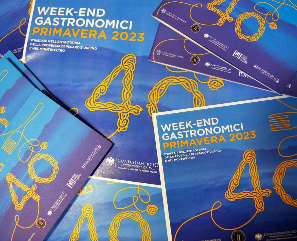 Ultimo finesettimana di maggio con i Week-end Gastronomici, giunti alla 40esima edizione, ideati e organizzati da Confcommercio Marche Nord. In programma fino all’11 giugno, vedono protagonisti ben 46 ristoranti, distribuiti in 30 località. ‘Itinerari nell’entroterra della provincia di Pesaro Urbino e nel Montefeltro’ il sottotitolo della manifestazione, tra le più longeve e di successo della intera regione Marche, promossa con il prestigioso patrocinio dell’Enit Agenzia Nazionale del Turismo, e il sostegno di Camera di Commercio delle Marche, RivieraBanca. Gruppo Hera e Prosciutto di Carpegna.